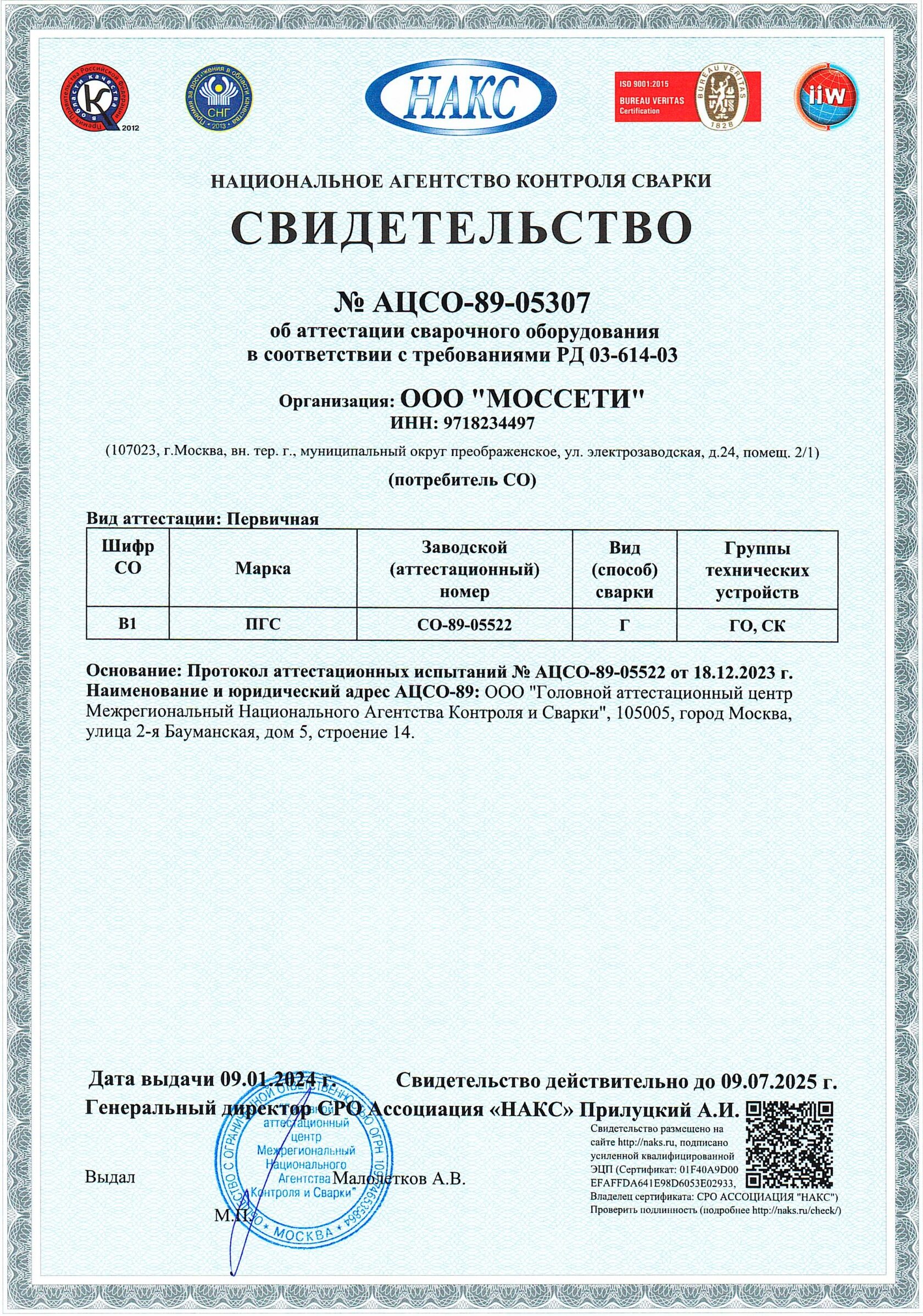 Сварочное оборудование имеет аттестацию в НАКС